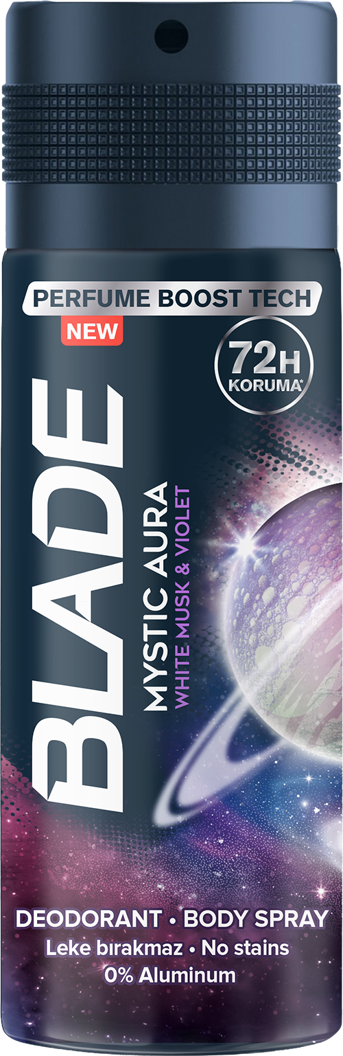 Blade Deodorant Body Spray, erkek bakımında yeni bir standart belirliyor. Patentli Perfume Boost Teknolojisi ile parfüm etkisi hep ilk anki gibi çarpıcı! Tüm vücuda yayılan güçlü koku ve 72 saat* ter kokusuna karşı koruma sunuyor.